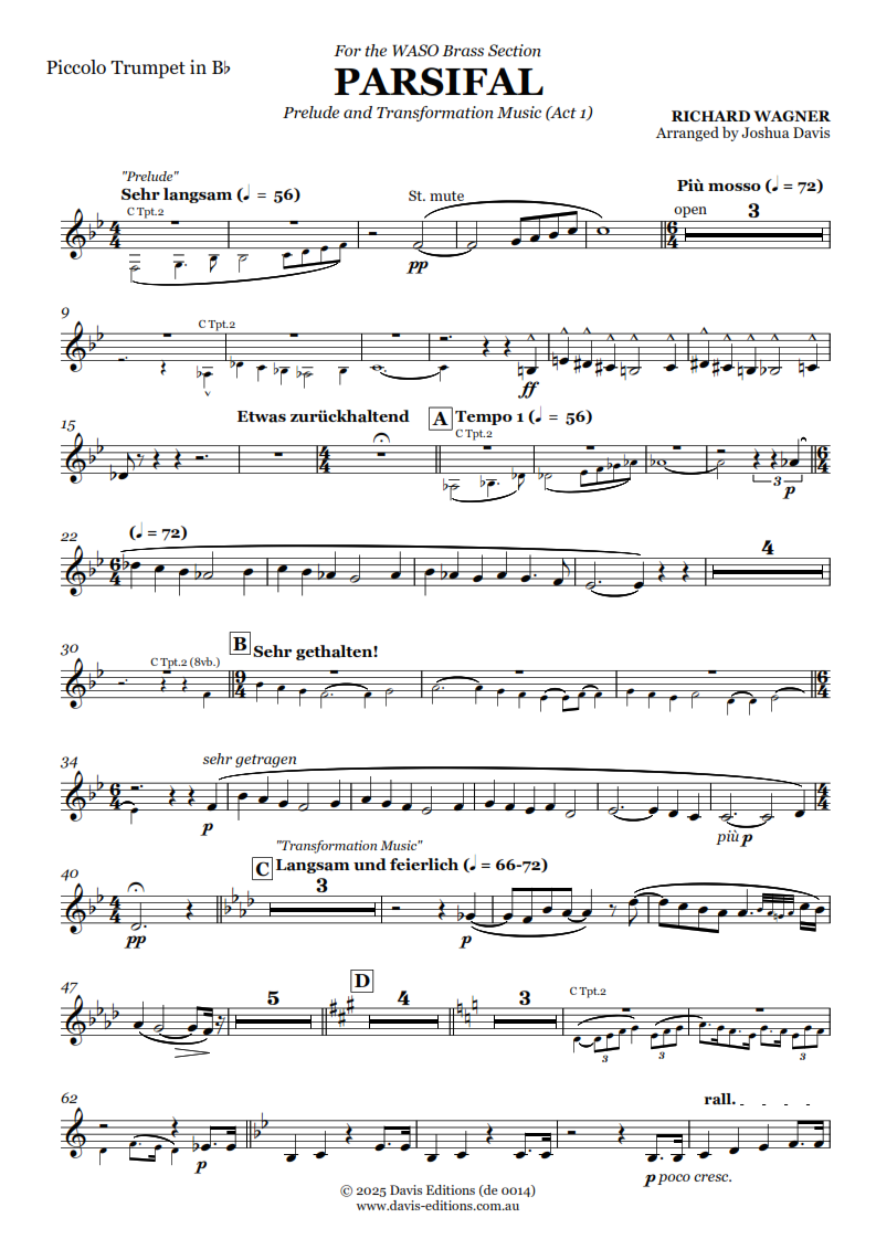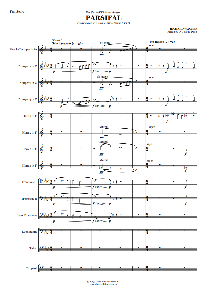 Recorded in 2020, this arrangement features the West Australian Symphony Orchestra Brass Ensemble. A recording can be found at Ensemble Edition: Wagner & Böhme beginning at 22:10.
